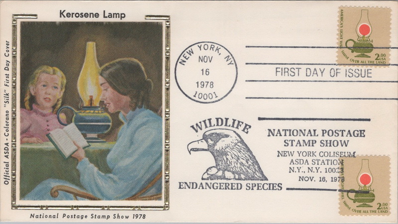 | | 1970s | | 988 | 1611 | 11/16/1978 | Kerosene Lamp; Colorano; Set of 3 - FDOI, 2 National Postage Stamp Show 1978 cachets - one with dual UO Show cancellation | $25.00 |