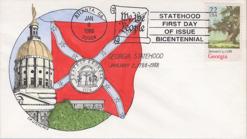 | | 1980s | | 999 | 2339 | 1/6/1988 | Bicentenary Statehood, Georgia; Geerlings, Frans M.; HPD; 100 made | $20.00 |