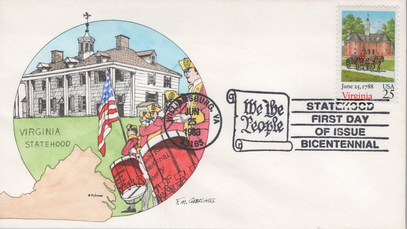 | | 1980s | | 1005 | 2345 | 6/25/1988 | Bicentenary Statehood, Virginia; Geerlings, Frans M.; HPD; 125 made | $20.00 |