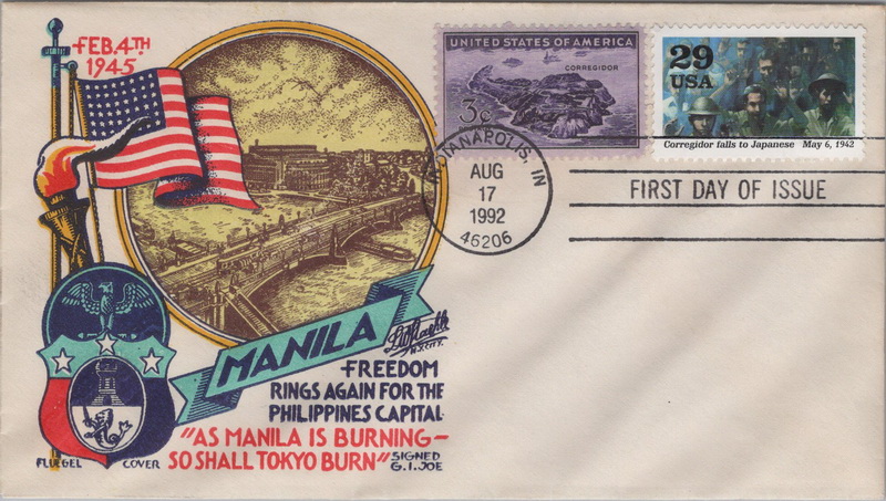 | | 1990s | | 1028 | 2697d | 8/17/1992 | World War II, Corregidor falls to Japanese May 6, 1942; Fluegel; World War II Patriotic cachet - Liberation of Manila; Combo #925 Corregidor stamp | $20.00 |
