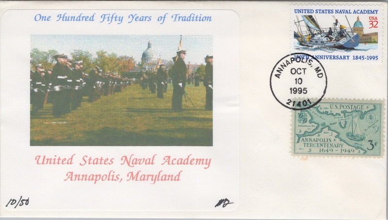 | | 1990s | | 1040 | 3001 | 10/10/1995 | U.S. Naval Academy; Phil's Patriotic Cachets; with enclosure | $12.00 |