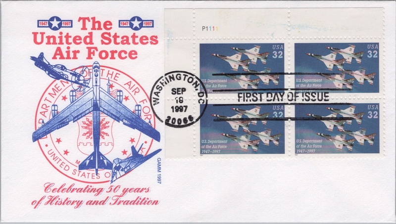 | | 1990s | | 1047 | 3167 | 9/18/1997 | US Air Force; Gamm Covers; Plate Block of 4, HC | $10.00 |
