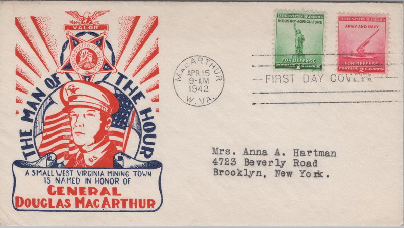 | | Event Covers | | 1117 | Event | 4/15/1942 | Dedication General Douglas MacArthur Post Office, MacArthur WV MC TA | $15.00 |