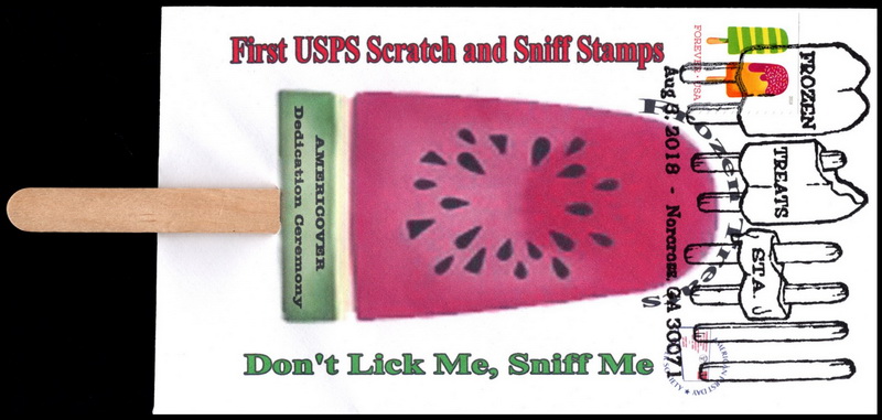 | | Event Covers | | 1124 | Event | 8/3/2018 | Therome Cachet; Norcross GA Frozen Treats Station; ice cream stick crafted into design of cover; 20 made | $15.00 |