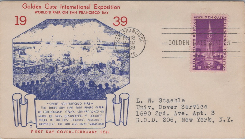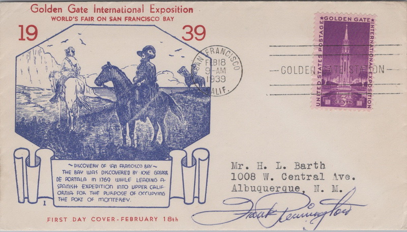 | | First Cachets | | 1135 | 0852 | 2/18/1939 | Golden Gate International Exposition; Cal-Craft; P16a-16j; Set of 9; blue/red; 16a signed by Cachet Producer, Frank Pennington; Magnificent set! | $600.00 |