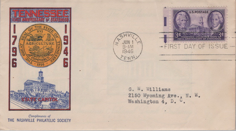 | | First Cachets | | 1139 | 0941 | 6/1/1946 | Tennessee; Nashville Philatelic Society, The; M20; MC TA | $25.00 |