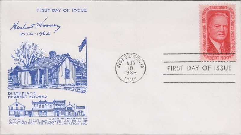 | | First Cachets | | 1147 | 1269 | 8/10/1965 | Herbert Hoover; West Branch (IN) Times; M35 | $15.00 |