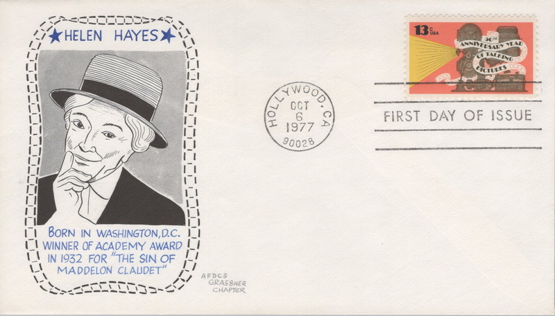 | | First Cachets | | 1162 | 1727 | 10/6/1977 | Talking Pictures; Robert C. Graebner Chapter 17, AFDCS; Helen Hayes; First Cachet | $25.00 |