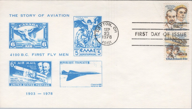 | | First Cachets | | 1166 | C092a | 9/23/1978 | Wright Brothers; Pardoe; FL; blue | $15.00 |