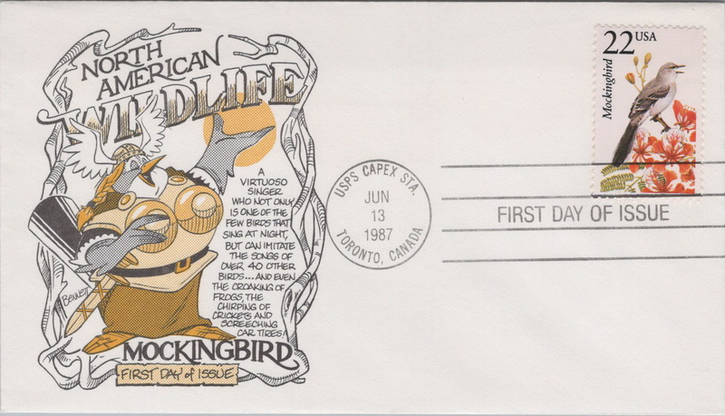 | | First Cachets | | 1187 | 2330 | 6/13/1987 | American Wildlife, Mockingbird; Bennett Cachetoons; First Cachet | $25.00 |