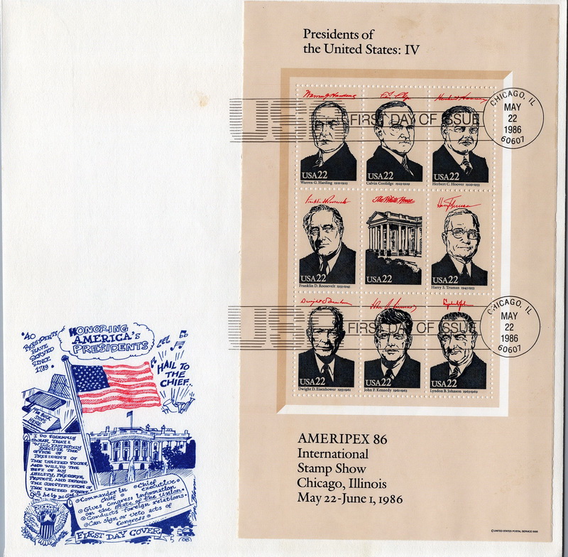 | | Oversized | | 1209 | | 5/22/1986 | 2216-2219; United States Presidents; OB; Set of 4; FDOI; Old Bridge Philatelic Corp. | $75.00 |