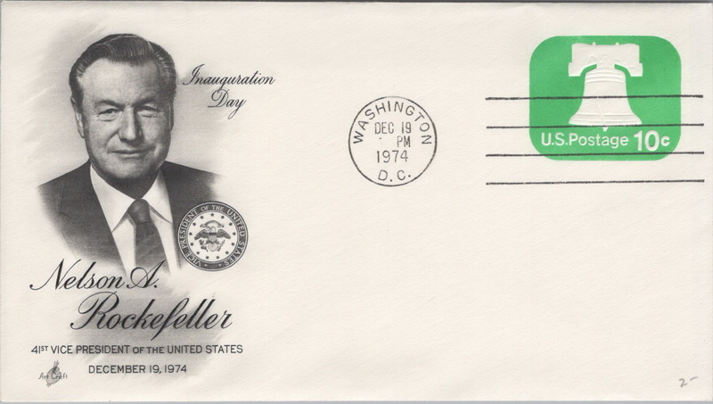 | | Presidential Inaugurations & Related Items | | 1225 | Event | 12/19/1974 | ArtCraft; Vice-President Rockefeller, Inauguration Day | $8.00 |