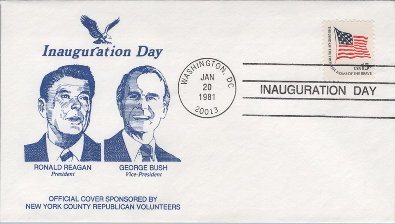 | | Presidential Inaugurations & Related Items | | 1226 | | 1/20/1981 | Inauguration Day Reagan/Bush; New York County Republican Volunteers; blue; Washington DC | $8.00 |