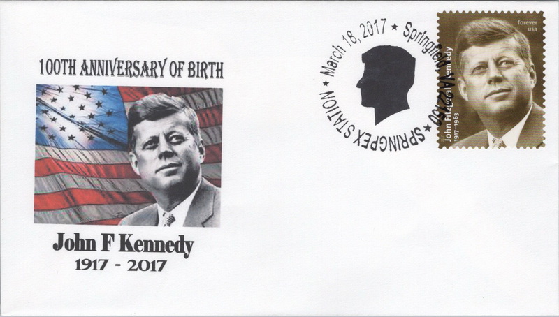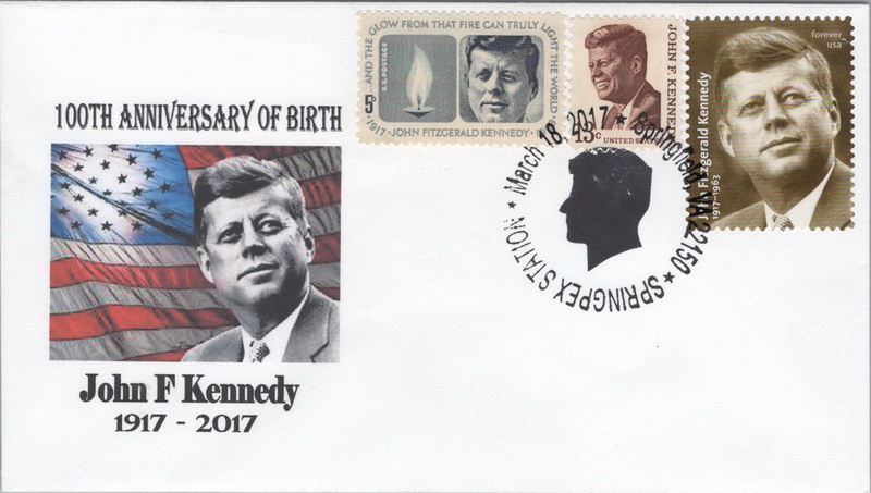 | | Presidential Inaugurations & Related Items | | 1251 | Event | 3/18/2017 | 2024 President John F. Kennedy 100th Anniversary of Birth; CEC/FM; 3 Springfield VA SPRINGPEX 2017 Station, 1 McLean VA NAPEX Station, 1 Brookline MA Birthplace Station, and 1 Lexington MA WALPEX Station | $40.00 |