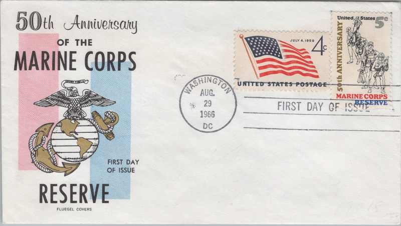 | | Sets & Collections | | 1271 | 1315 | 8/29/1966 | Marine Corps Reserve; Fluegel; M17; FDOI, 4 with single stamp combination - #940, 1067, 1094, and 1132 | $25.00 |