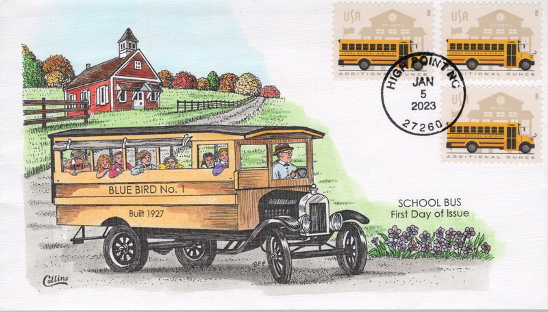 | | Cachetmakers Contest - Winners | | 3 | 5740 | 1/5/2023 | School Bus, Sheet; Fred Collins (Collins Cachets), Category 2: Hand-Colored/Hand-Painted, Printed from Original Artwork, Third Place; * MIN BID BELOW RETAIL * | $50.00 |