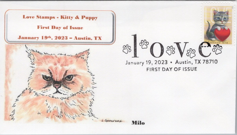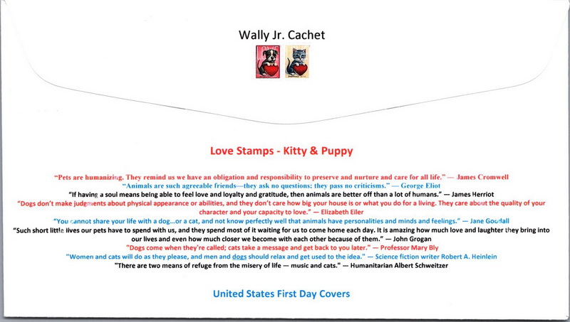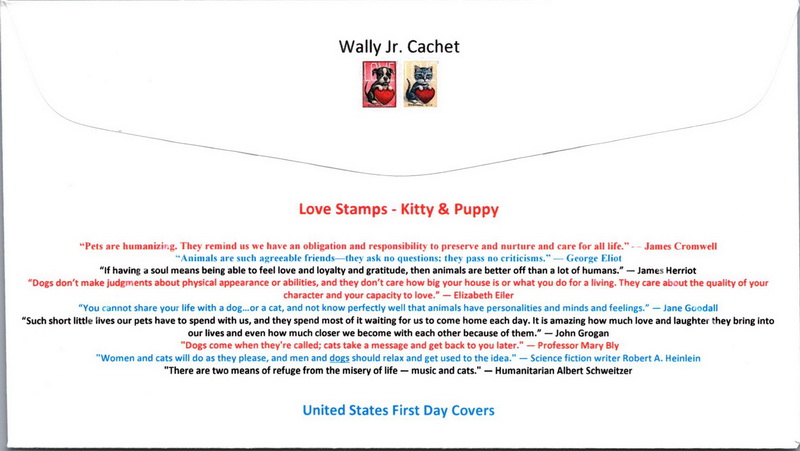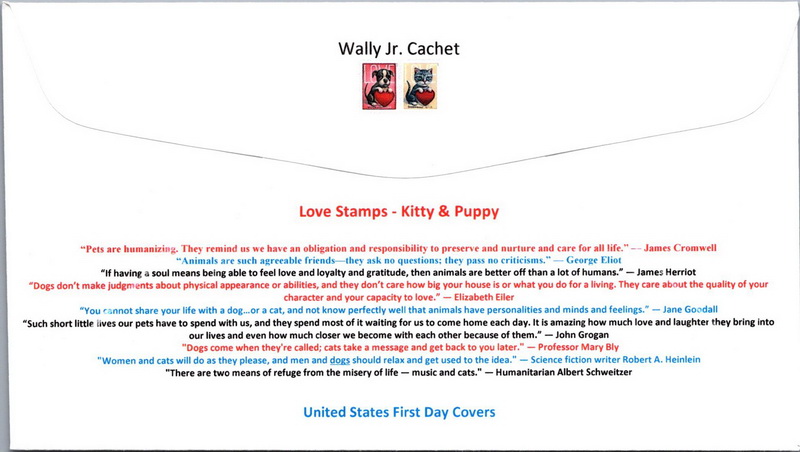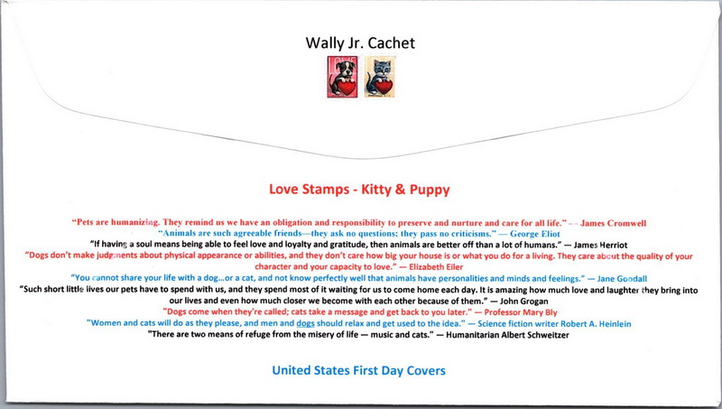 | | Cachetmakers Contest - Other Entries | | 45 | 5746b | 1/19/2023 | Love: Kitty & Puppy, Kitten; Wally Jr. Cachet; Set of 4 | $40.00 |