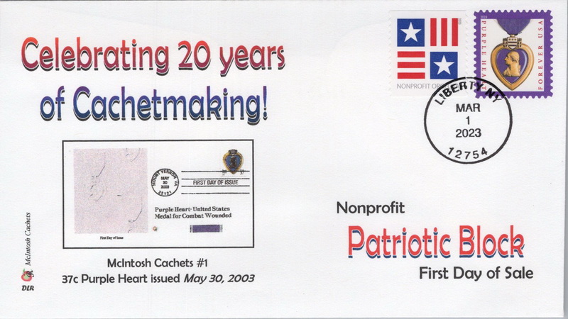 | | Cachetmakers Contest - Other Entries | | 54 | 5756 | 3/1/2023 | Patriotic Block, Non-Profit Rate; McIntosh Cachets; 20 made | $12.00 |