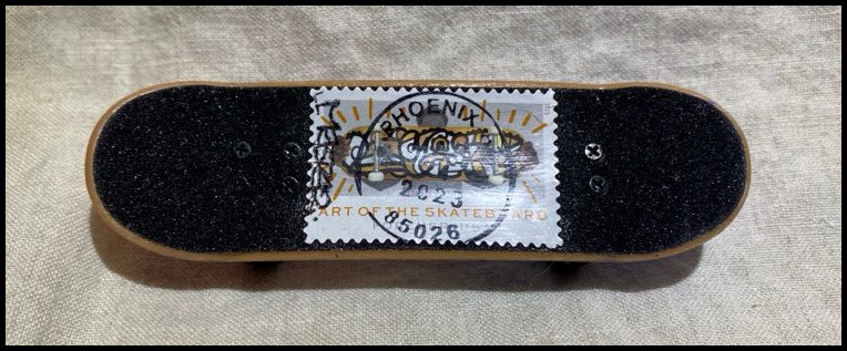 | | Cachetmakers Contest - Other Entries | | 65 | 5766 | 3/24/2023 | Art of the Skateboard: Jaguar Design by MasPaz (Frederico Frum); White, Casey Jo; FDOI BHC on customized toy skateboard | $25.00 |