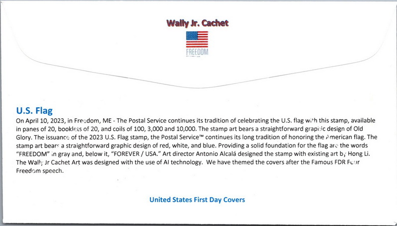 | | Cachetmakers Contest - Other Entries | | 66 | 5787 | 4/10/2023 | U.S. Flag; Wally Jr. Cachet; Set of 4 | $40.00 |