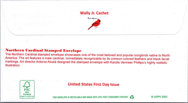 | | Cachetmakers Contest - Other Entries | | 82 | U702 | 7/9/2023 | Northern Cardinal; Wally Jr. Cachet | $12.00 |