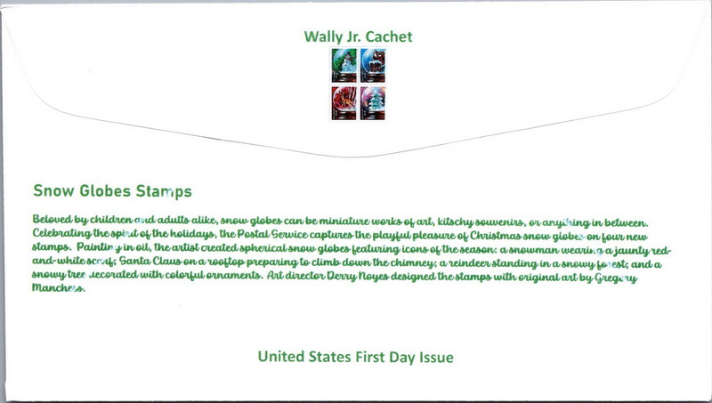 | | Cachetmakers Contest - Other Entries | | 104 | 5819a | 9/19/2023 | Snow Globes, Set of 4; Wally Jr. Cachet | $40.00 |