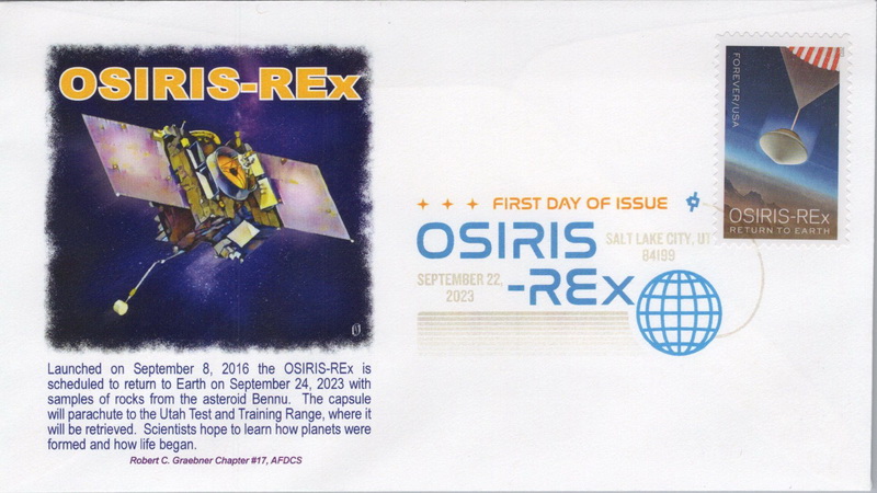 | | Cachetmakers Contest - Other Entries | | 113 | 5820 | 9/22/2023 | OSIRIS-Rex; Robert C. Graebner Chapter 17, AFDCS | $15.00 |