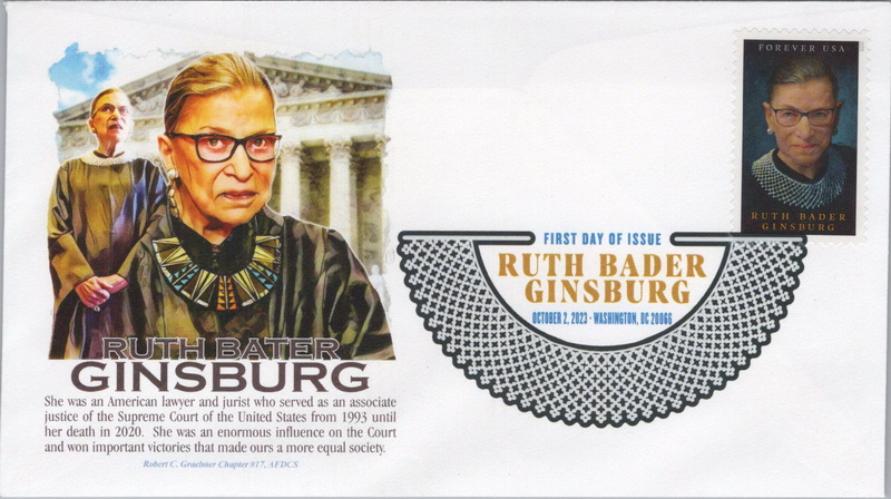 | | Cachetmakers Contest - Other Entries | | 127 | 5821 | 10/2/2023 | Ruth Bader Ginsburg; Robert C. Graebner Chapter 17, AFDCS | $15.00 |