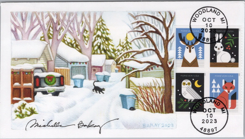 | | Cachetmakers Contest - Other Entries | | 133 | 5825a | 10/10/2023 | Winter Woodland Animals, Block of 4; AFDCS Court of Honor | $20.00 |