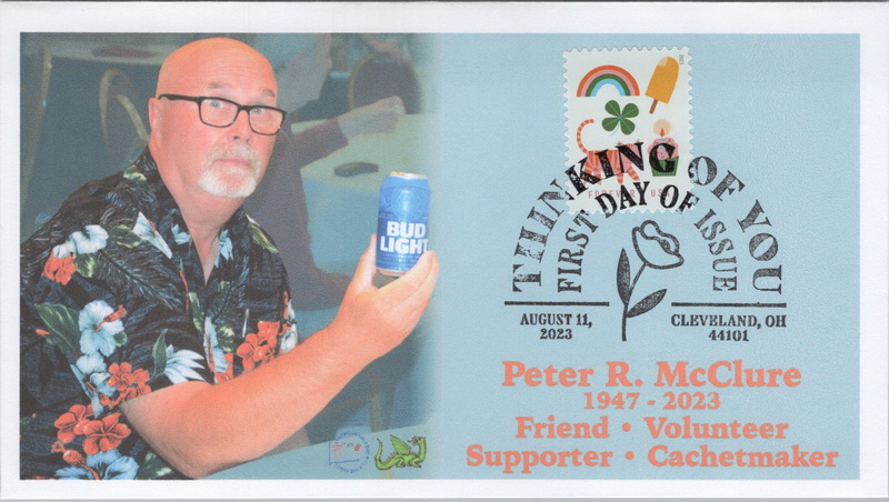 | | Cachetmakers Contest - Event Covers | | 141 | 5806 | 8/11/2023 | Thinking of You, Rainbow, Ice Cream Bar, Four-leaf Clover, Cat, Cupcake and Candle; Dragon Cards - Mourning cover for Peter McClure | $15.00 |