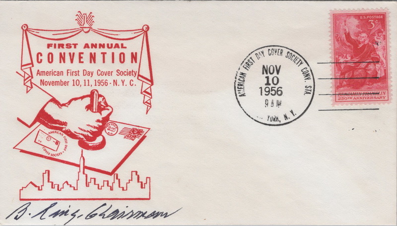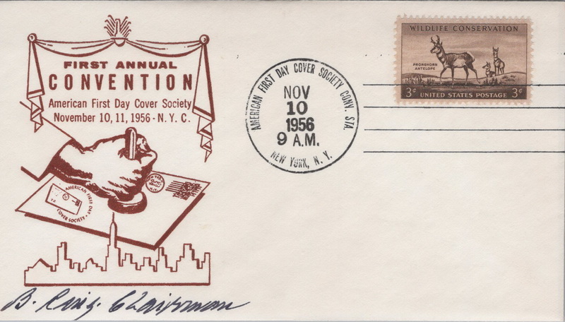 | | American First Day Cover Society | | 153 | Event | 11/10/1956 | Artcraft; Set of 3; First AFDCS Annual Convention; New York NY; 2 signed by Chairman ? | $25.00 |