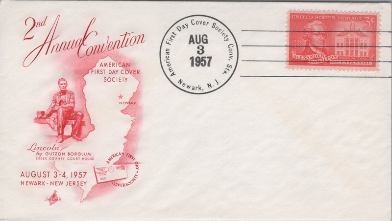 | | American First Day Cover Society | | 156 | Event | 8/3/1957 | Artcraft; Set of 3; Second AFDCS Annual Convention; Newark NJ; 1 8/3 and 2 8/4 | $20.00 |