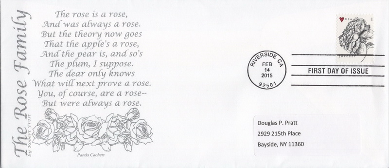 | | American First Day Cover Society | | 175 | 4959 | 2/14/2015 | Wedding, Vintage Rose; Panda Cachets; For AFDCS Fundraising event | $20.00 |