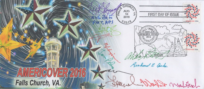 | | American First Day Cover Society | | 180 | 5130 | 8/19/2016 | Patriotic Spiral, coil; Therome Cachet; Americover 2016; Dual FDOI and UO Falls Church VA Americover Station; Signed by 12 prominent AFDCS members; Size 10 | $25.00 |