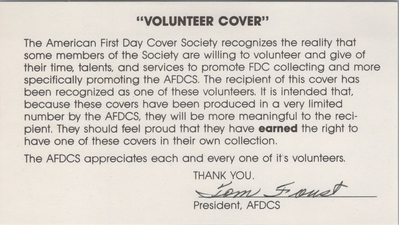 | | AFDCS Volunteer Thank You Covers | | 188 | 3085 | 7/11/1996 | Folk Heroes, John Henry; Bennett Cachetoons | $20.00 |