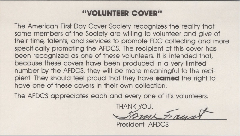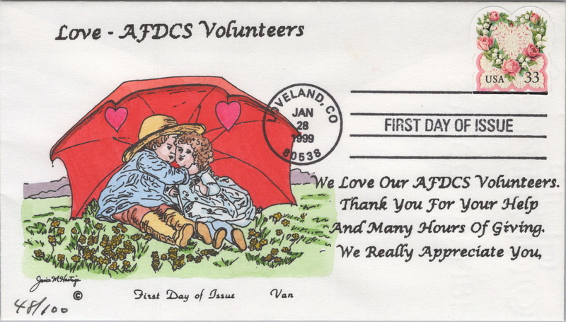 | | AFDCS Volunteer Thank You Covers | | 191 | 3274 | 1/28/1999 | Love, SA; Van Natta, George R.; HPD; 100 made | $20.00 |