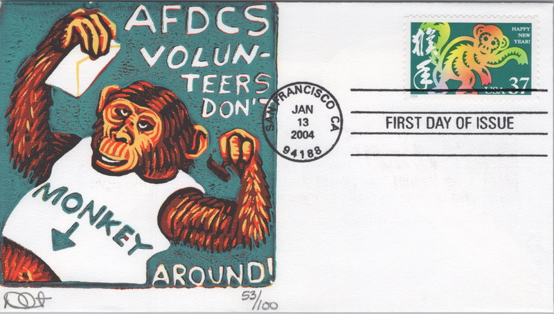 | | AFDCS Volunteer Thank You Covers | | 197 | 3832 | 1/13/2004 | Chinese New Year, Year of the Monkey; Dave Curtis Cachets; RBP; 100 made | $25.00 |