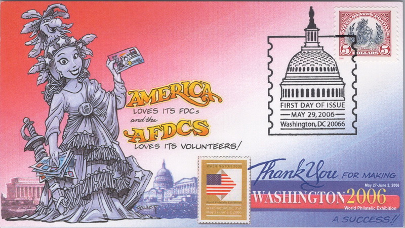 | | AFDCS Volunteer Thank You Covers | | 202 | 4075c | 5/29/2006 | Washington 2006 WPE, $5.00 single; Bennett Cachetoons | $60.00 |