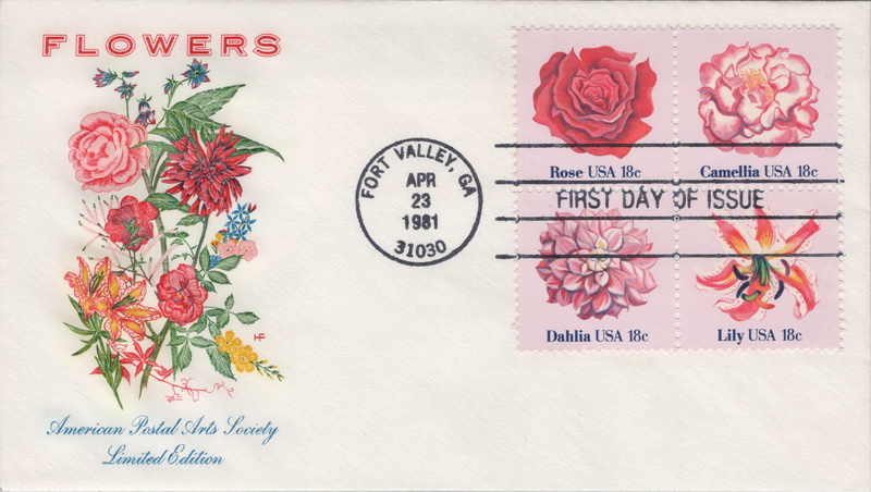 | | American Postal Arts Society | | 224 | 1879a | 4/23/1981 | Flowers of America, Block of 4; American Postal Arts Society | $10.00 |