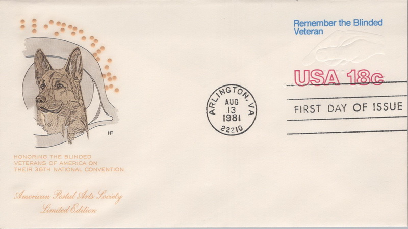 | | American Postal Arts Society | | 230 | U600 | 8/13/1981 | Remember the Blinded Veteran; American Postal Arts Society | $8.00 |