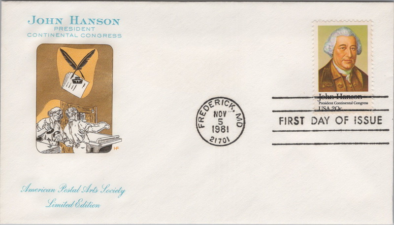| | American Postal Arts Society | | 235 | 1941 | 11/5/1981 | John Hanson; American Postal Arts Society | $8.00 |