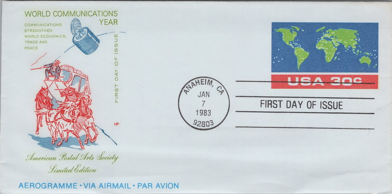 | | American Postal Arts Society | | 253 | UC056 | 1/7/1983 | World Communications, letter sheet; American Postal Arts Society | $8.00 |
