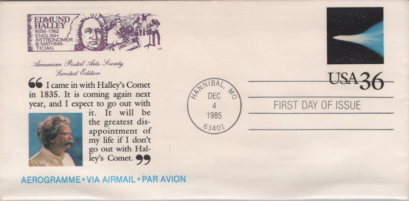 | | American Postal Arts Society | | 263 | UC060 | 12/4/1985 | Comet Tail, letter sheet; American Postal Arts Society | $8.00 |