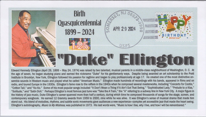 | | 6° Cachets | | 272 | Event | 4/29/2024 | 6° Cachets; Duke Ellington, Birth Sesquicentennial | $12.00 |