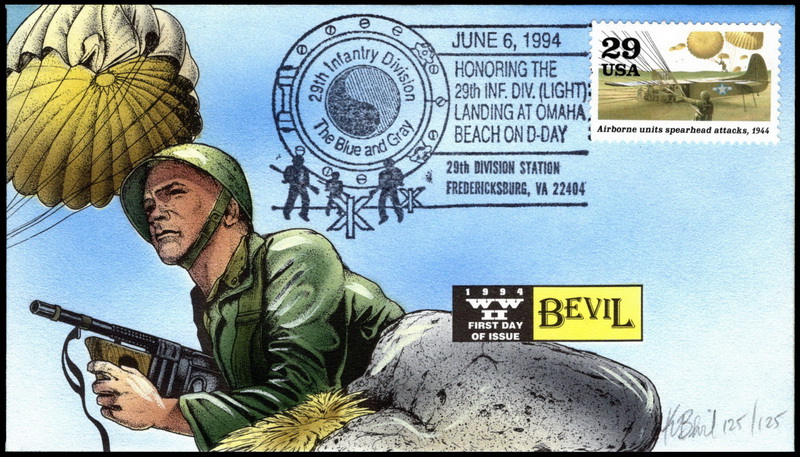 | | Bevil Cachets | | 299 | 2838 | 6/6/1994 | World War II; Bevil Cachets; HPD; Set of 10; 125 made of each; FDOI and UO cancels | $175.00 |