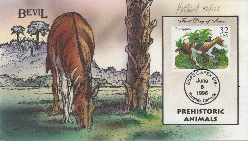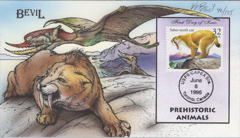 | | Bevil Cachets | | 309 | 3080x | 6/8/1996 | Prehistoric Animals, Set of 4; Bevil Cachets; HPD; 125 made | $100.00 |