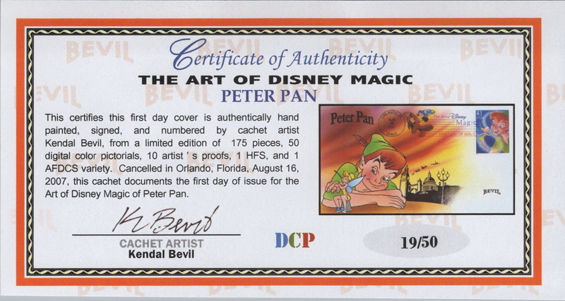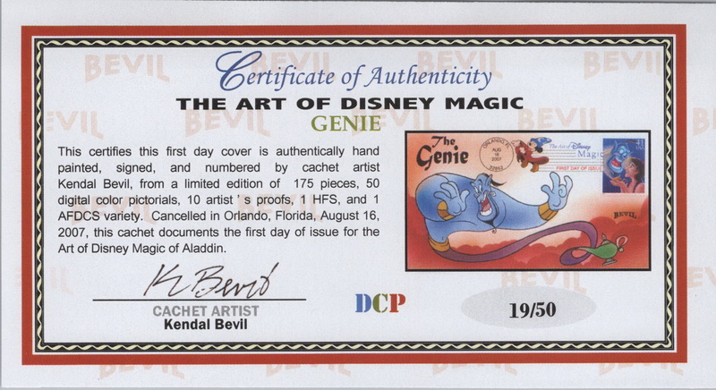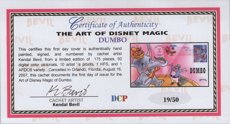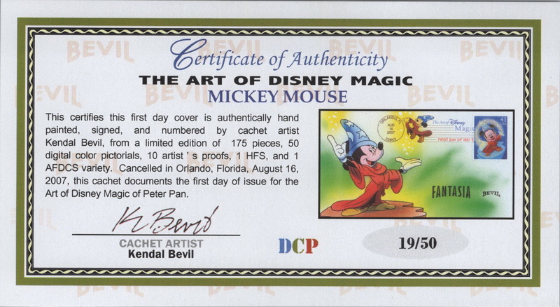 | | Bevil Cachets | | 314 | 4195x | 8/16/2007 | The Art of Disney, Set of 4; Bevil Cachets; HPD; 50 made; DCP | $75.00 |