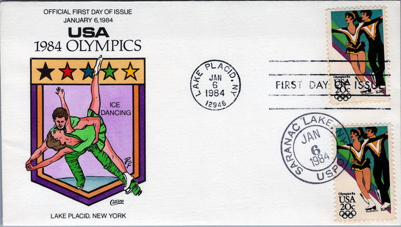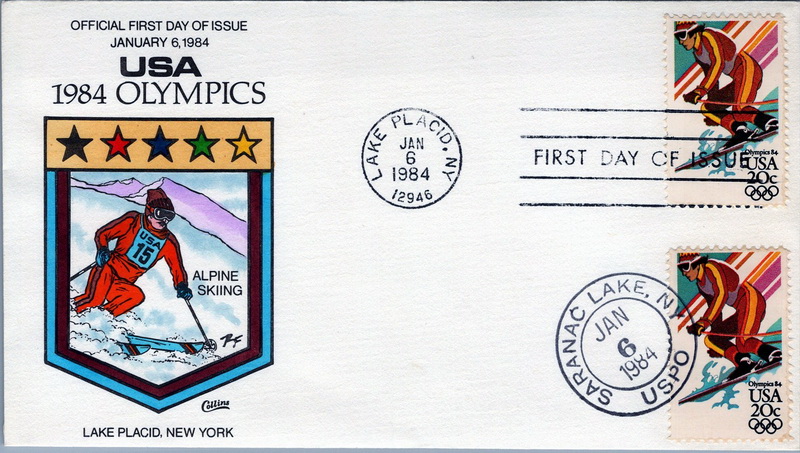 | | Fred Collins | | 321 | 2070x | 1/6/1984 | 1984 Winter Olympics, Set of 4; Collins; HPD, Set of 4, Dual FDOI and UO Saranac Lake NY | $75.00 |