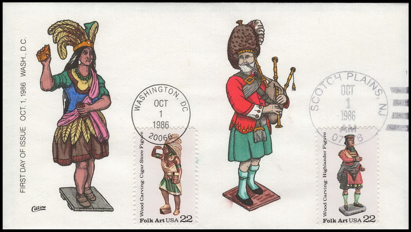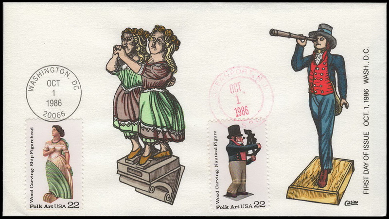 | | Fred Collins | | 333 | 2243a | 10/1/1986 | Woodcarved Figurines, Block of 4; Collins; HPD, Set of 2, Dual FDOI and UOs Scotch Plains NJ and Oceanport NJ | $30.00 |
