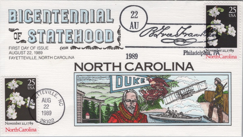 | | Fred Collins | | 343 | 2347 | 8/22/1989 | Statehood: North Carolina; Collins; HPD, Dual FDOI and UO Philadelphia PA BFF Station | $20.00 |